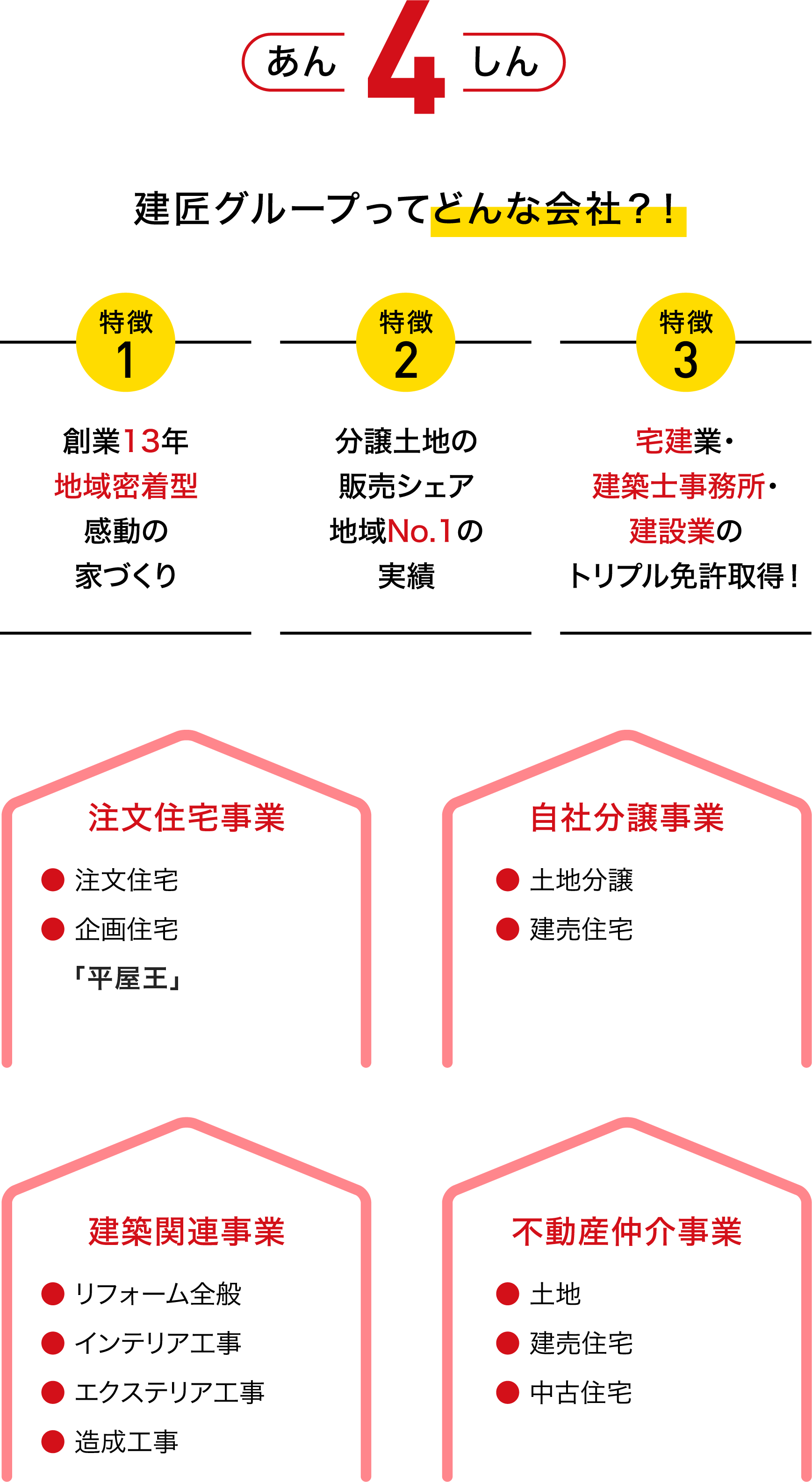 | 事業内容 | 注文住宅の設計・施工、一般住宅の分譲、土地の売買・仲介 |