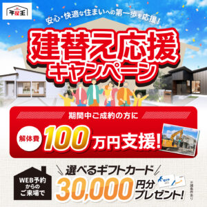 建替え応援キャンペーン!開催🏠ご成約のお客様に解体費100万円進呈します!