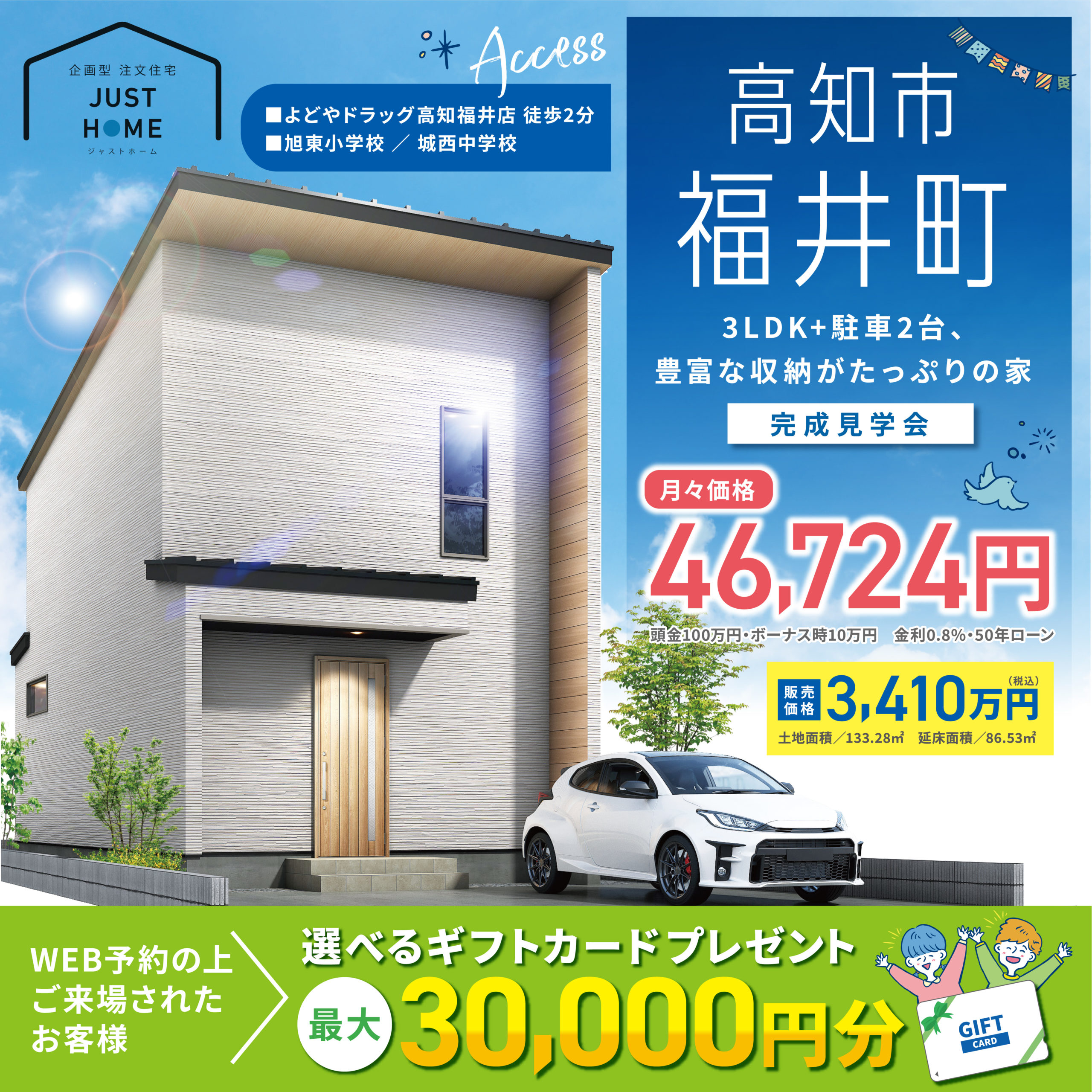 ジャストホームは、価格以上の満足をお届けする「等身大のマイホーム」で、家族の未来を応援します。