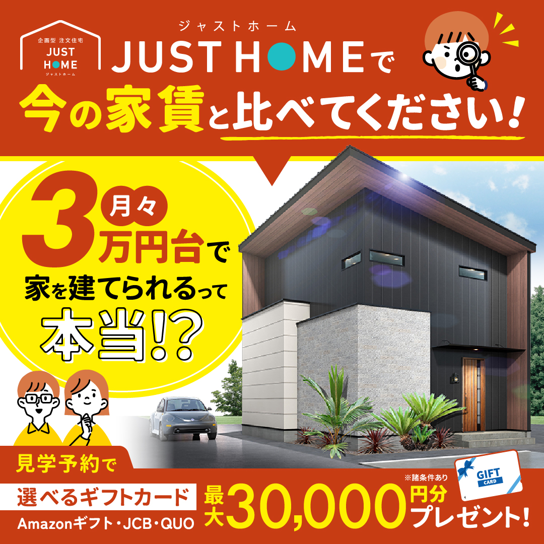 ジャストホームは、「家賃並みの支払いで、家族にぴったりのマイホームを」という想いから生まれた、ローコスト住宅ブランドです。