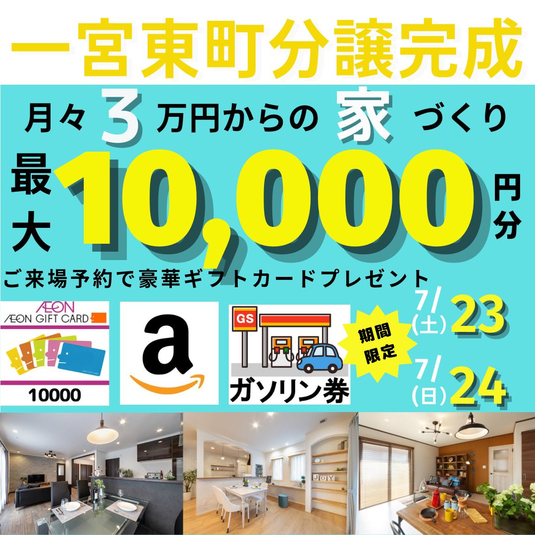 予約来場でガソリン券、イオンギフトカード、アマゾンギフトの中からおひとつ、10,000円分プレゼント!