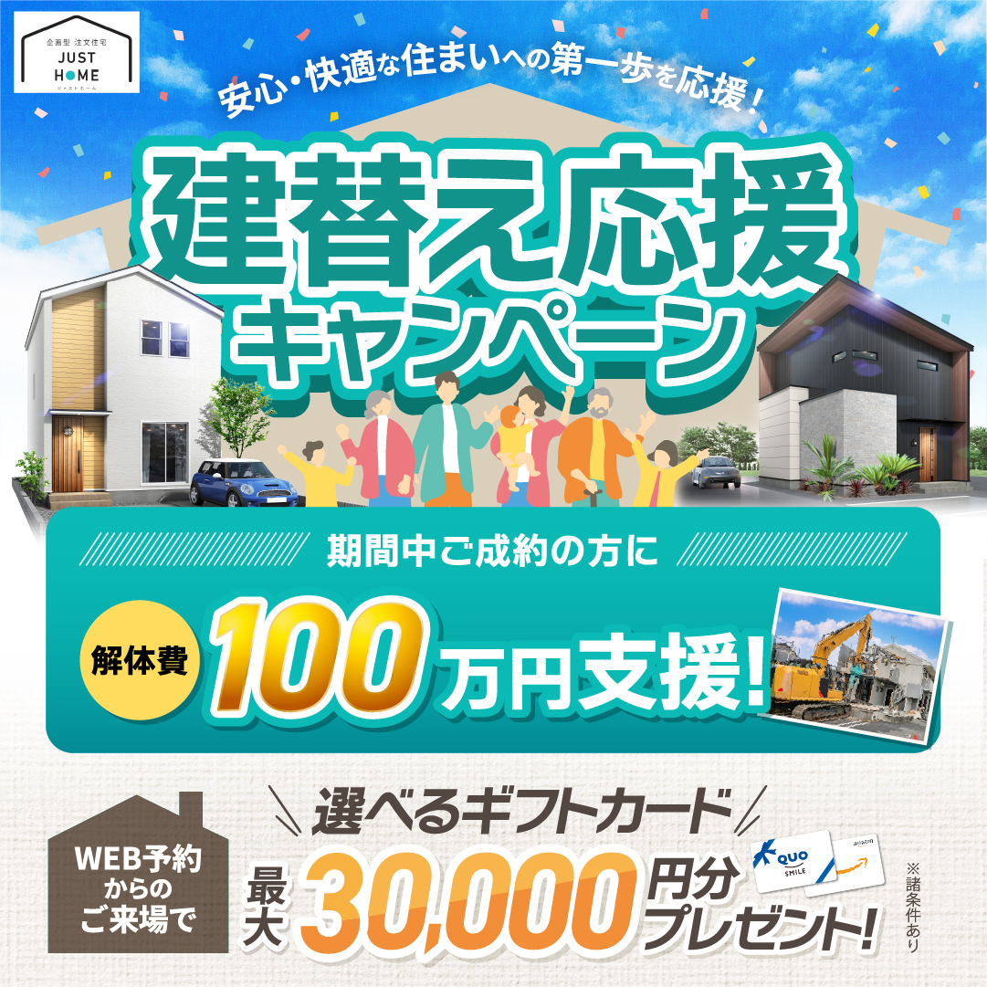 ジャストホームは、価格以上の満足をお届けする「等身大のマイホーム」で、家族の未来を応援します。