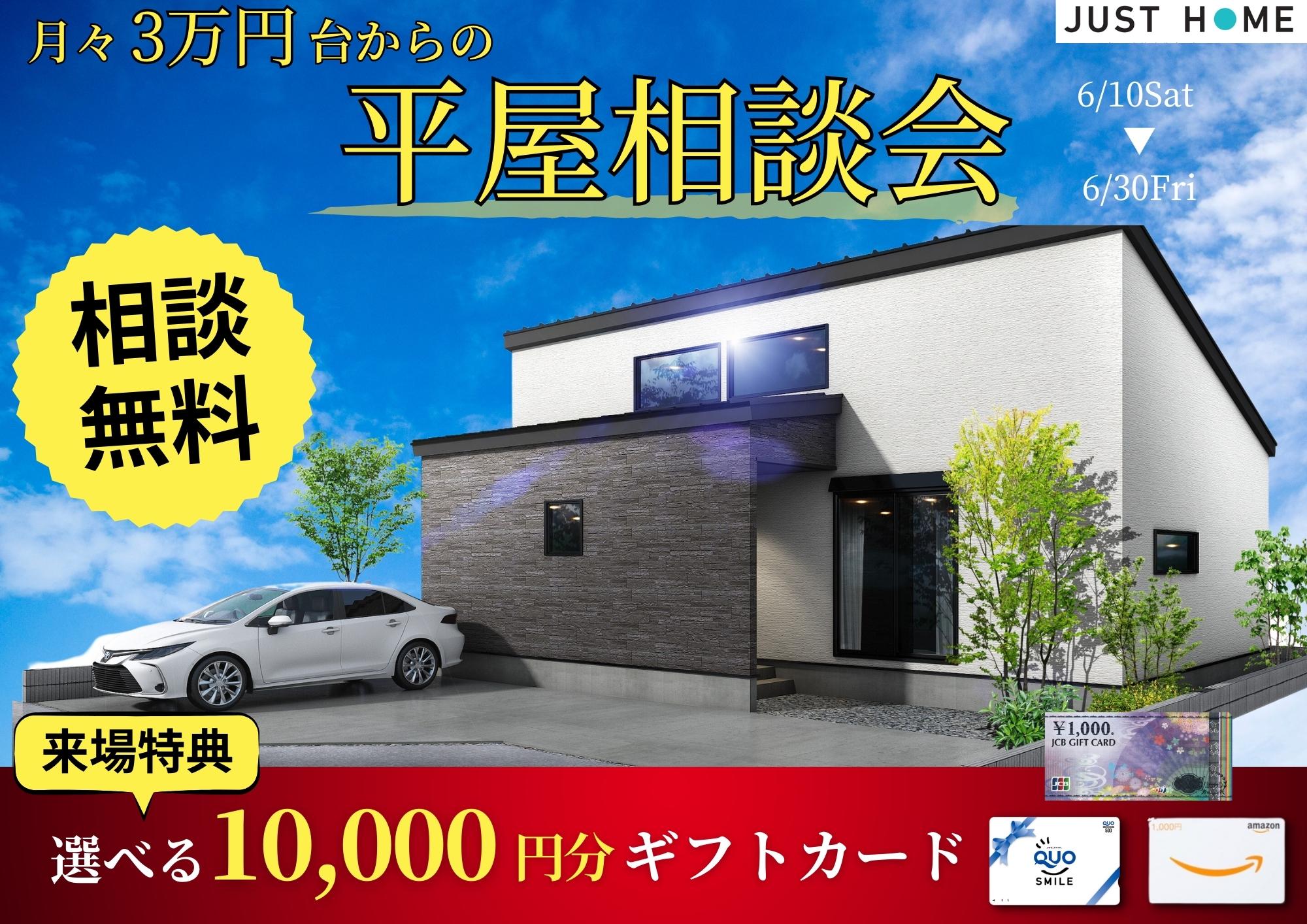 JUSTHOMEでは、6/10(土)~30(金)までの期間限定で「平屋の家 相談会」を開催いたします。