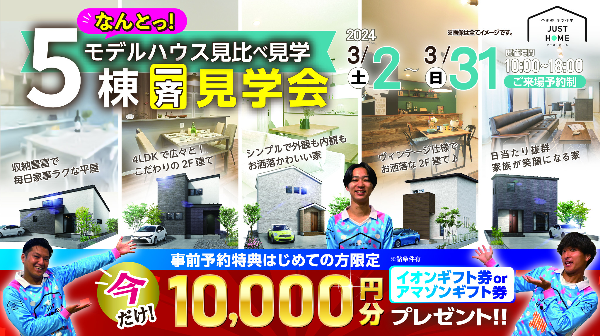 【ご来場プレゼント進呈条件】①弊社施工可能エリアにて前向きにお家づくりを検討されていると弊社スタッフが判断した方。 ②はじめてジャストホームのイベントおよび店舗へご来場される方。 ③20歳以上の方。 ④ 施工可能エリア外での建築予定の方の来場特典は進呈いたしかねますのでご了承ください。 ⑤ご来場プレゼントは、次回ご来場時のお渡しとなります。