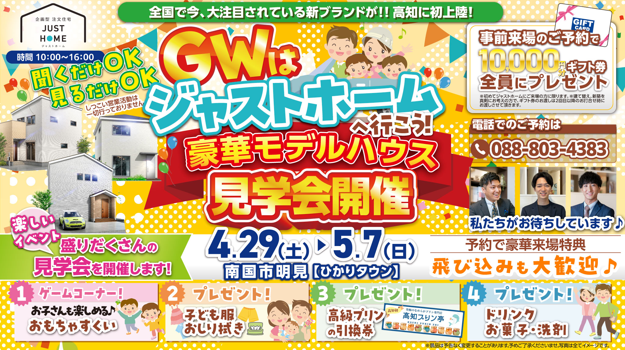 ※来場特典は、ご予約のうえ初めてジャストホームにご来場。また、真剣に家づくりを考えている方のみとさせていただきます。