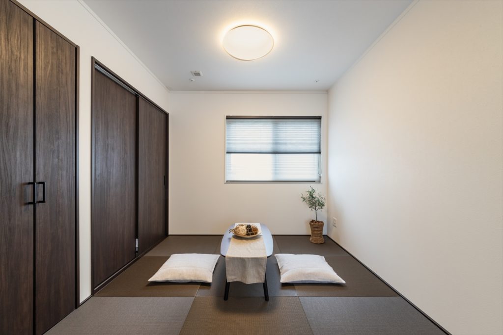 客間としても使える和空間は白と茶のアクセントで洗練されたデザインに。