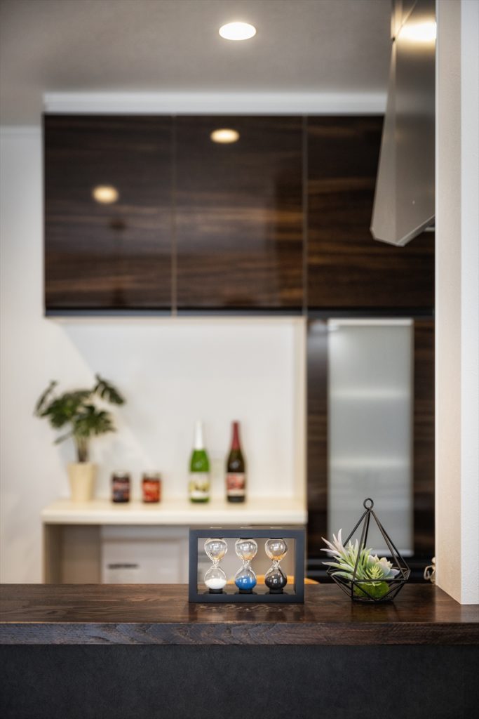 家を彩るインテリアにもこだわりを詰め込みました。お家全体の大人シックな雰囲気をそのままに、お気に入りの雑貨や植物をレイアウトして何気ない日々をアップデート。