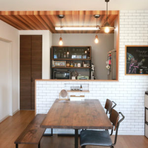 木調の温もりを取り入れたキッチンダイニング。作りこみすぎない大人のナチュラルモダンを演出