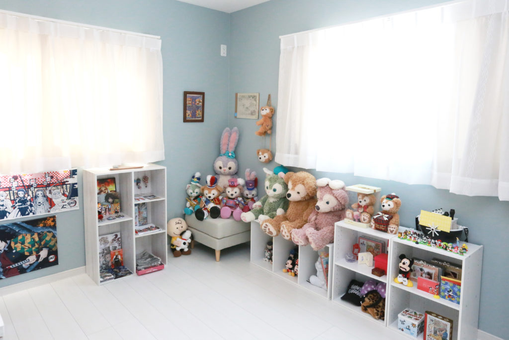 趣味であふれた部屋にはシンプルな壁紙を