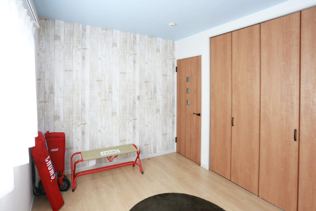 部屋全体を木目調に合わせることで収納部屋もおしゃれに。