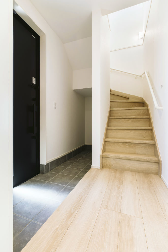 玄関の横に広い収納スペースがあり、ゴルフ用品やキャンプ用品などを収納できる