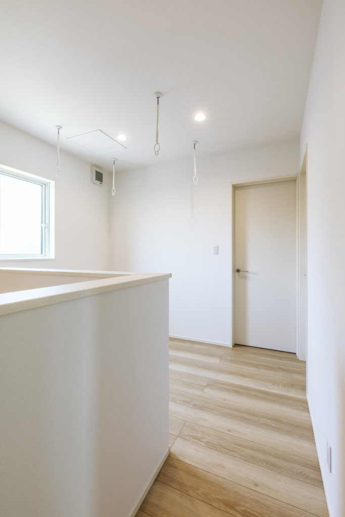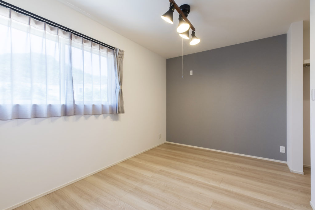 壁と木目調の床が落ち着いた印象を与えるフリースペース。ウォーキングクローゼットを要しているため主寝室としても活躍する部屋となっている