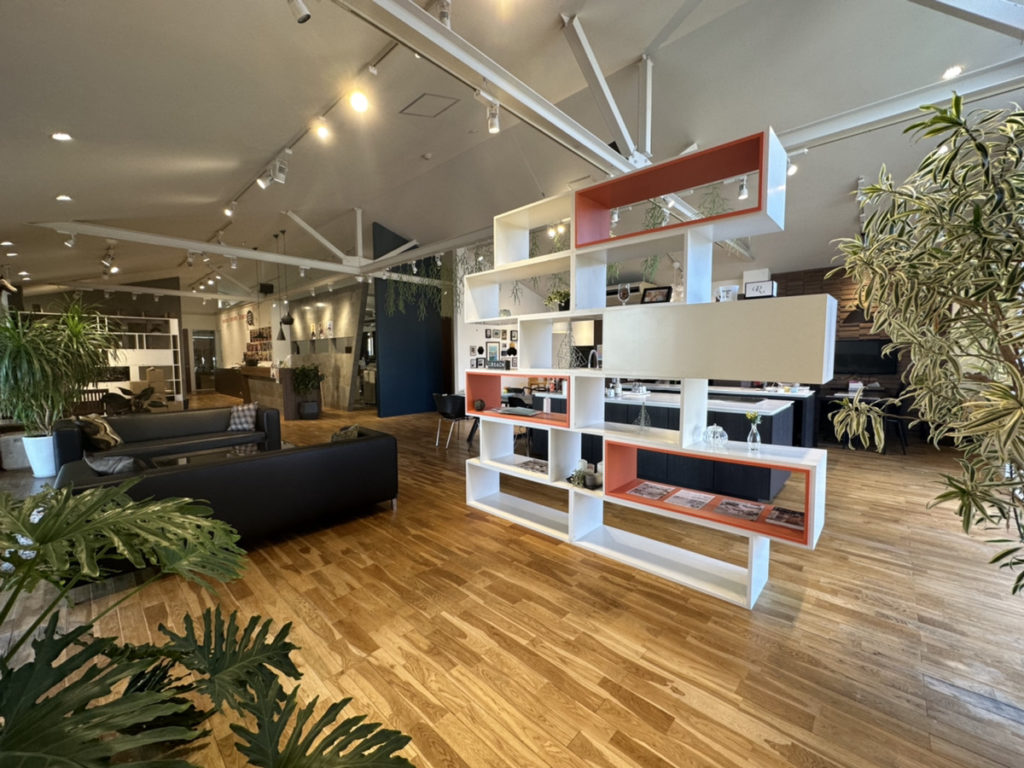 清潔感のある広々とした事務所です♪スタッフが愛情をこめて育てている観葉植物で空気も綺麗です(笑)!キッズスペースもあるのでお子さんがいらっしゃる方も安心してお家づくりの相談ができます◎